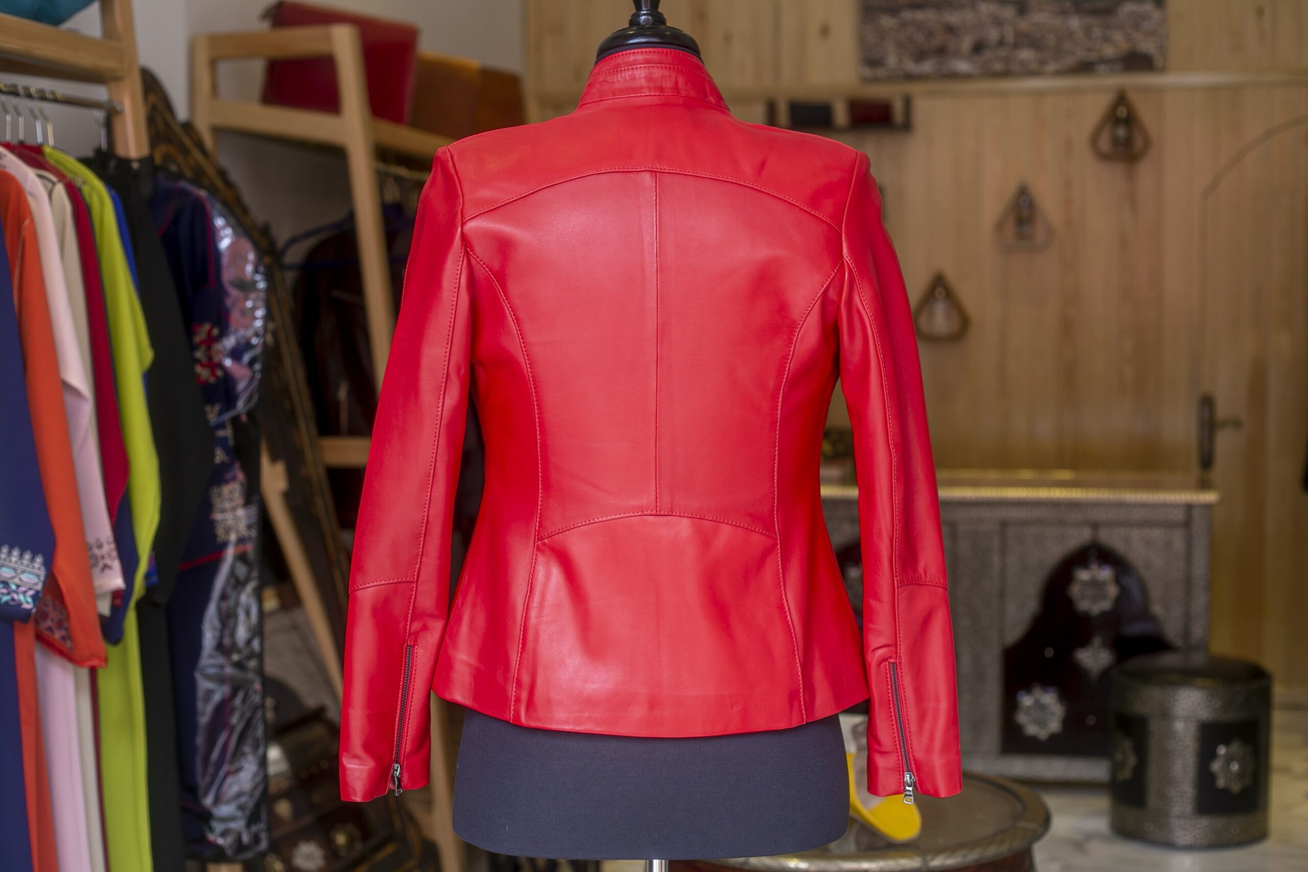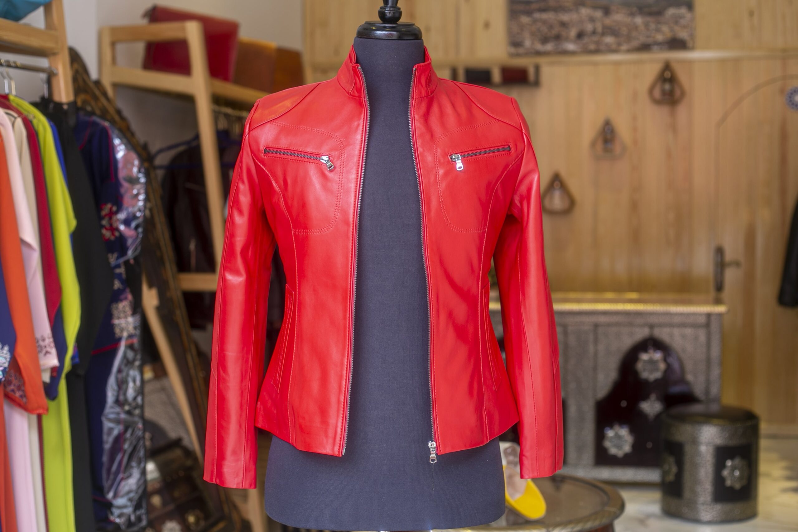 Sublimez vos looks avec notre veste en cuir de couleur rouge pour femmes.